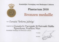 Our nursery submitted 3 clematis cultivars bred by Szczepan Marczyński for the novelty competition. The committee, appointed by Koninklijke Vereniging voor Boskoopse Culturen, awarded a silver medal to the Clematis ‘Mazury’ and bronze medals to the Clematis ‘Królowa Jadwiga’ and the Clematis ‘Vistula’. What’s more, the Clematis ‘Mazury’ also won a second Press Prize.